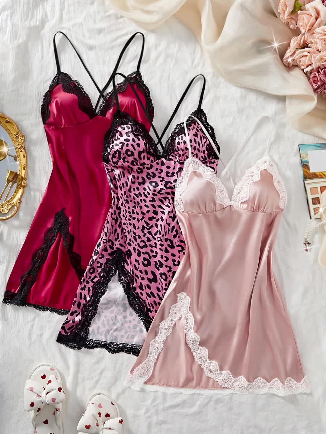 Slip into elegance with this 3-piece nightdress collection designed to stir desire and elevate your evenings. Featuring a sultry slit contrast lace pajama set, a lace-up V-neck backless stunner, and a flowing, elegant nightdress perfect for lounging or seduction. Each piece flatters with soft drape, delicate lace, and just the right amount of reveal. Whether you’re unwinding solo or setting the mood, this set delivers charm, comfort, and irresistible allure.