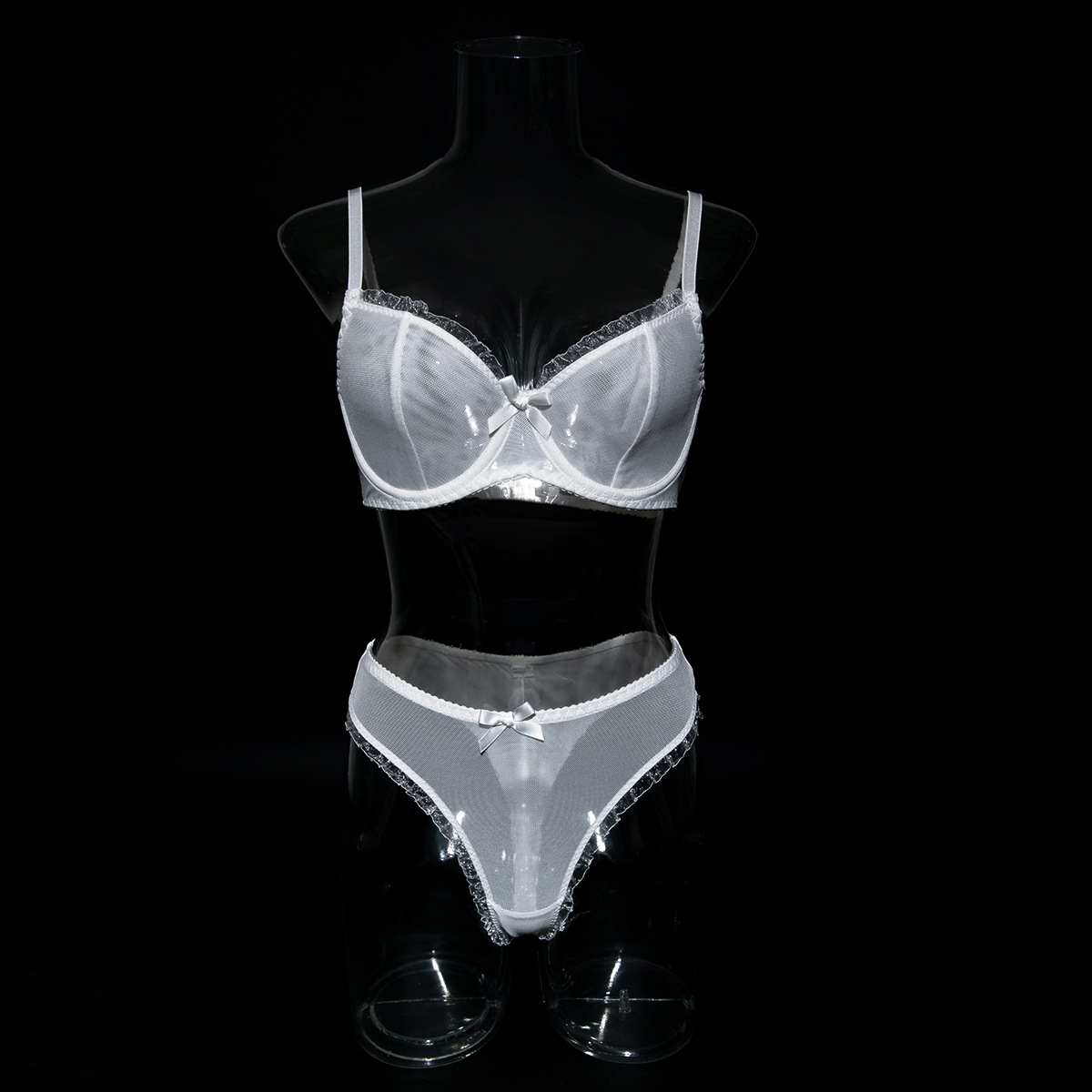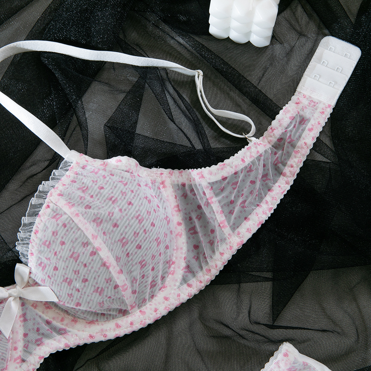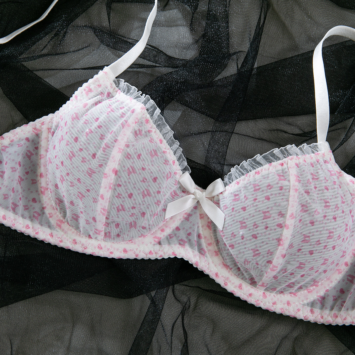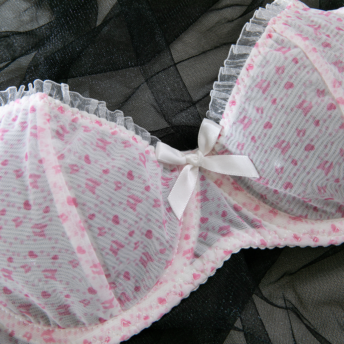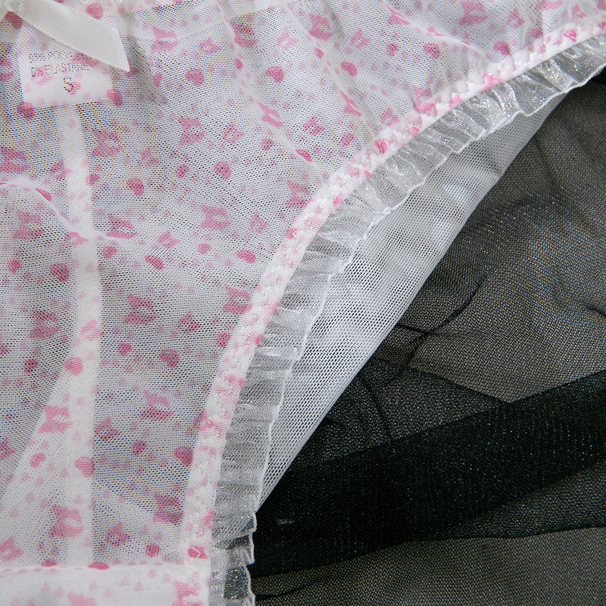 Mesh Mischief is made for the ones who flirt with comfort and fantasy in equal measure. This printed bra and panty set blends breathable net polyester with a soft gathering lift that flatters every curve—without ever feeling heavy. Designed for role play, real play, and everything in between, it’s a wink to the “cute girl” type with just enough edge to keep things interesting.